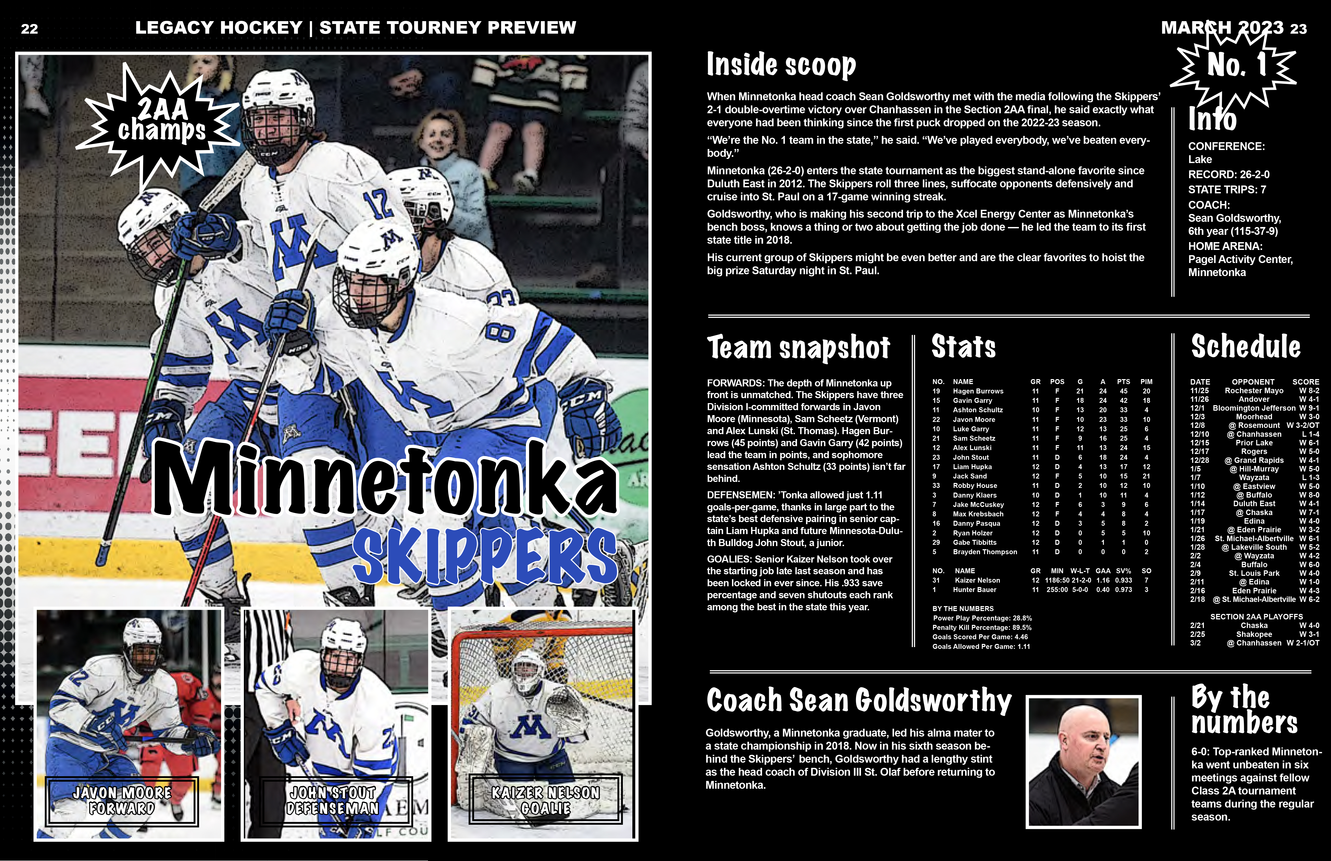When Minnetonka head coach Sean Goldsworthy met with the media following the Skippers’ 2-1 double-overtime victory over Chanhassen in the Section 2AA final, he said exactly what everyone had been thinking since the first puck dropped on the 2022-23 season.