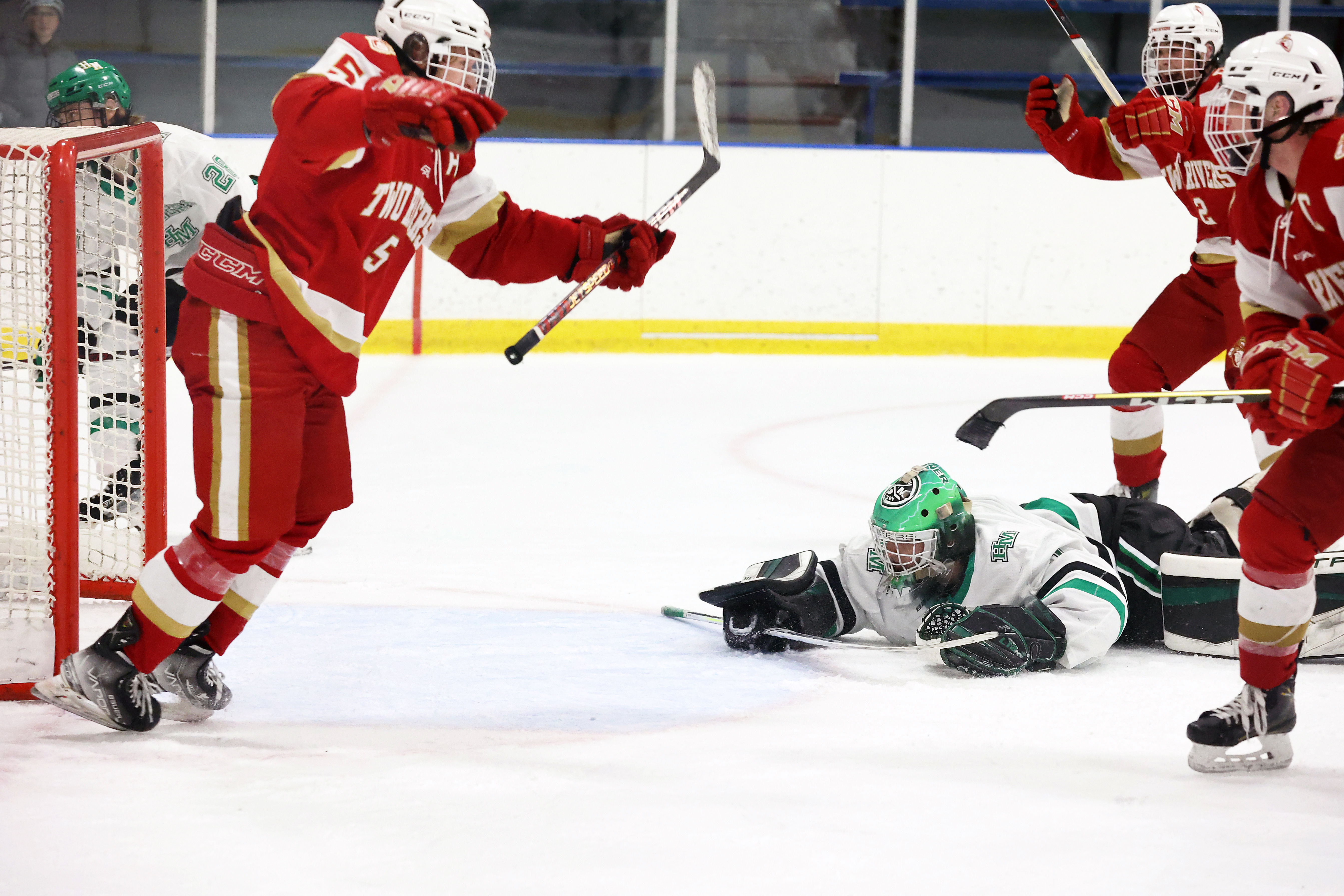 Historical wins like Two Rivers’ (the Warriors had been outscored 84-6 by the Pioneers since 2013) and the celebratory aftermath have played out at rinks around the state this season. At least four other teams have recorded exceedingly rare or never-before wins that will be etched in record books. Those outcomes have included: